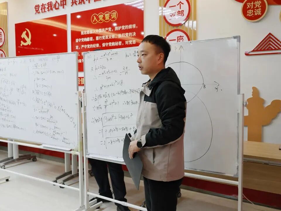 在解题说题环节,辅育实验学校赵利民老师与新乡工程学院附属学校李敏老师分别针对2025年高考典型试题展开深度解析。赵利民老师聚焦数学高考第18题椭圆与直线综合应用,从解题思路构建到答题规范梳理进行细致拆解;李敏老师则以高考诗歌鉴赏15题为载体,展现了文本解读与艺术赏析的专业视角。